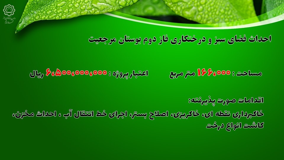 احداث فضای سبز و درختکاری فاز دوم بوستان مرجعیت