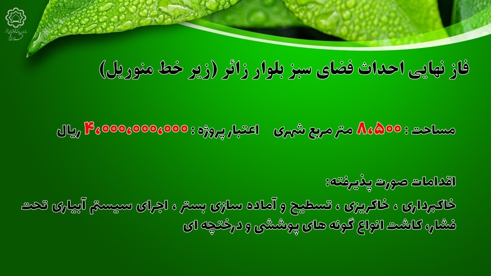 فاز نهایی احداث فضای سبز بلوار زائر (زیر خط منوریل)