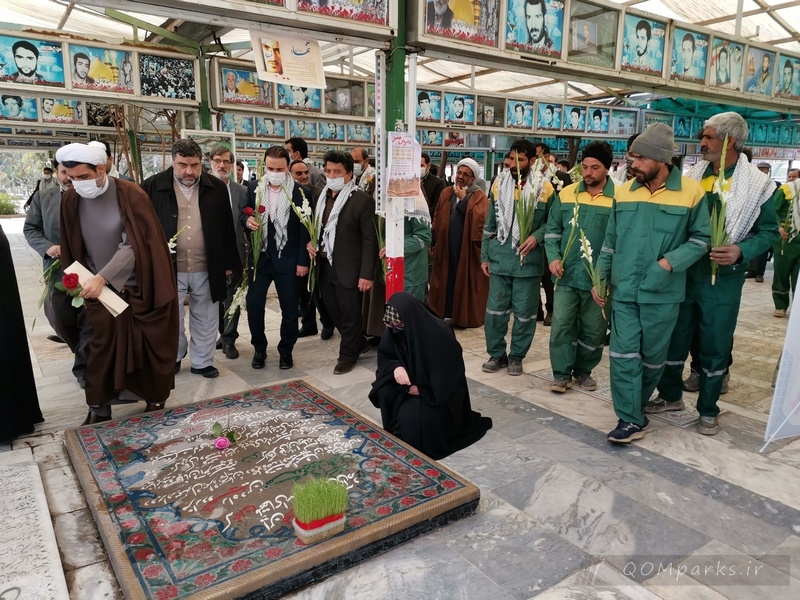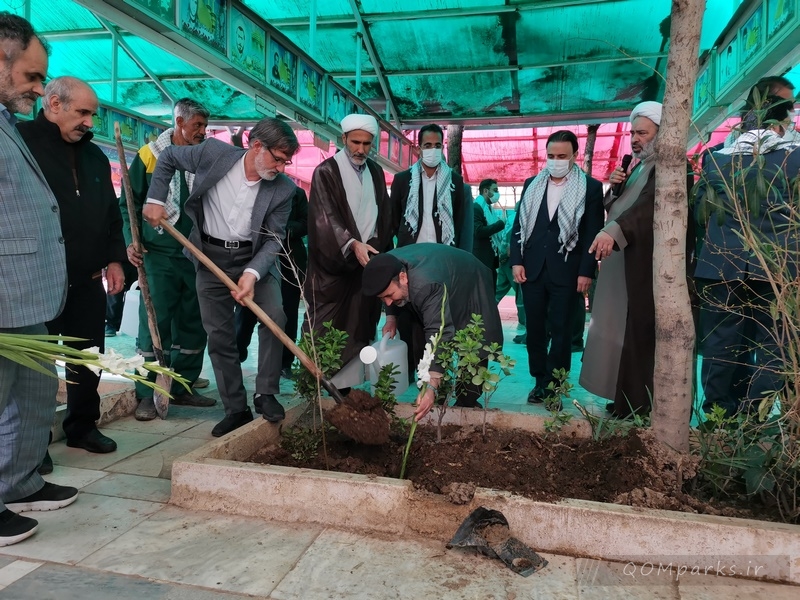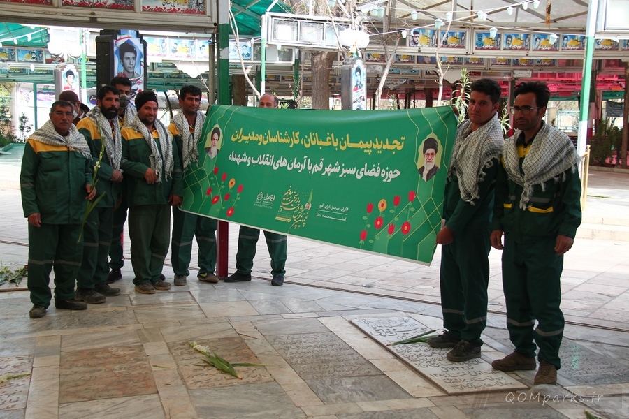 مراسم تجدید پیمان با آرمانهای انقلاب و شهدا با حضور باغبانان، کارشناسان، مدیران حوزه فضای سبز و خانواده های شهدا در گلزار شهدای قم برگزار شد.