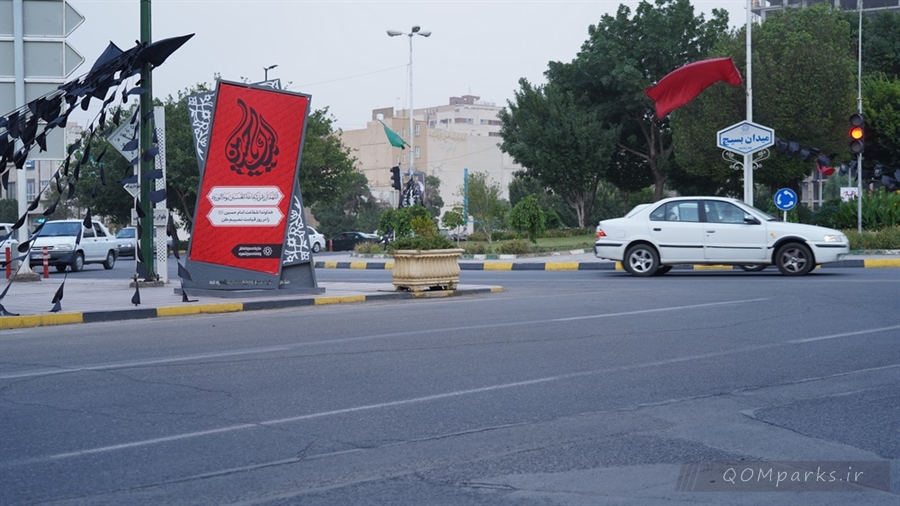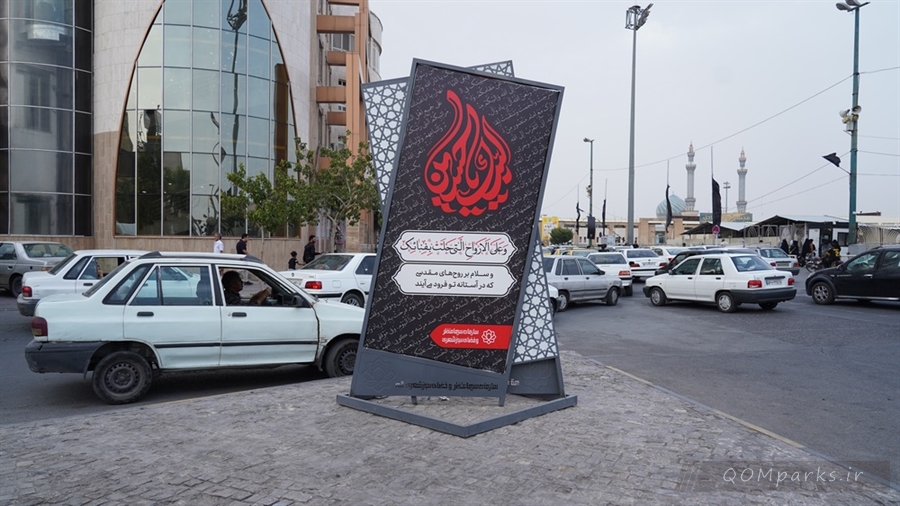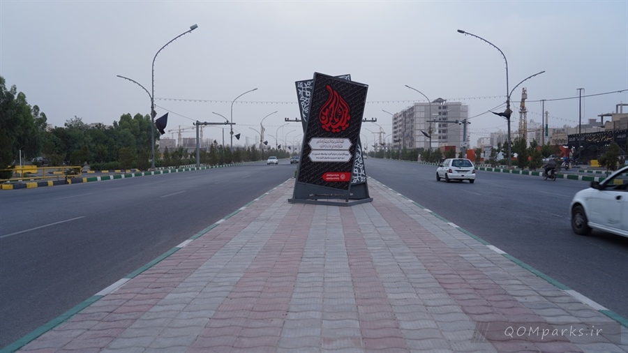 تصاویری از استقرار المان های مناسبتی عزای سیدو سالار شهیدان در سطح شهر قم.