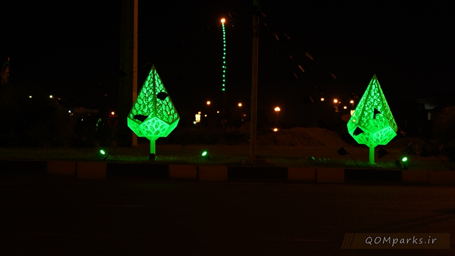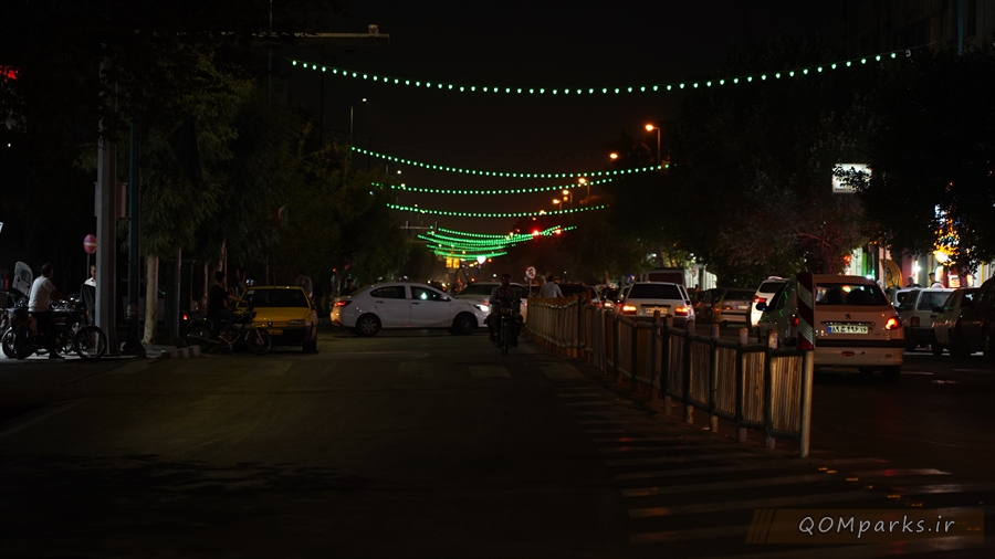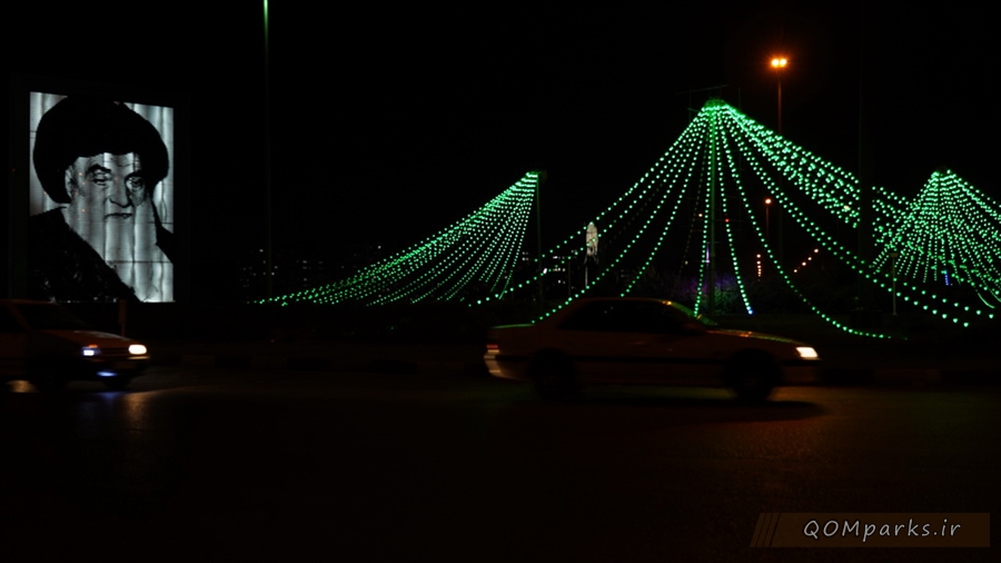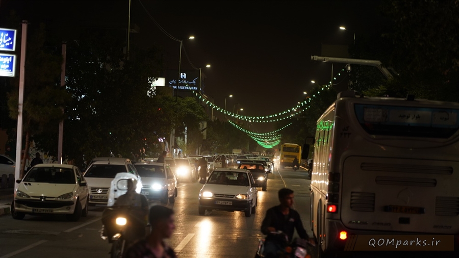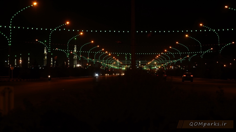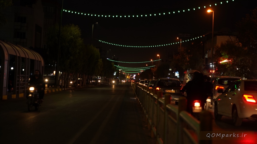 همزمان با ایام سوگواری سید و سالار شهیدان، حضرت اباعبدالله الحسین (ع)، نورپردازی های سطح شهر قم به رنگ سبز و قرمز درآمدند.