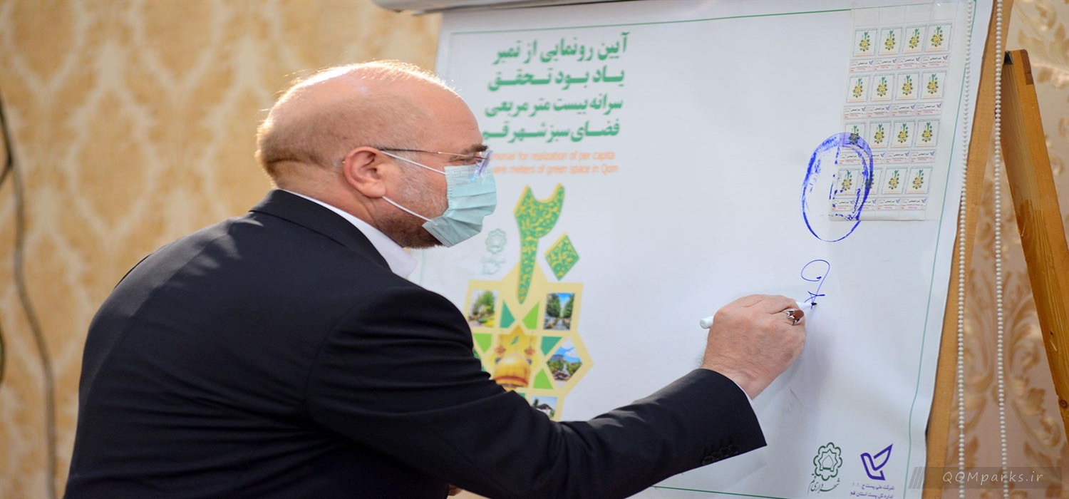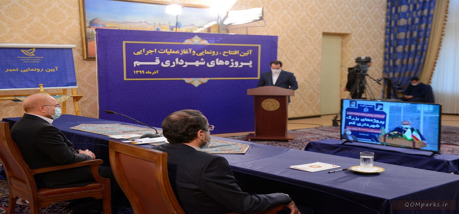 آیین افتتاح و بهرهبرداری از پروژه های شهری و رونمایی از سرانه 20 متر مربعی فضای سبز شهر قم توسط رئیس مجلس شورای اسلامی