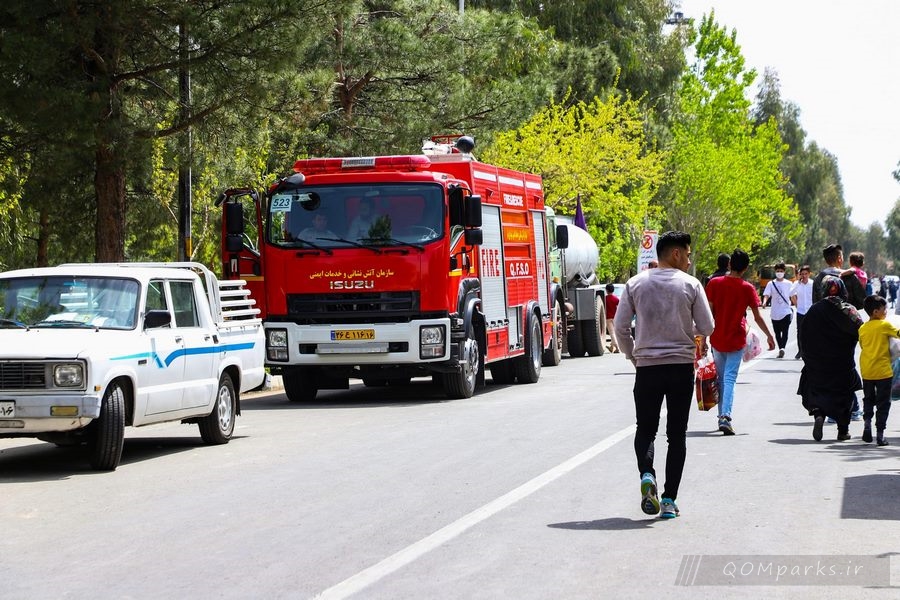 همزمان با روز طبیعت خودروهای عملیاتی سازمان آتشنشانی شهرداری قم در بوستانهای سطح شهر مستقر شدند.