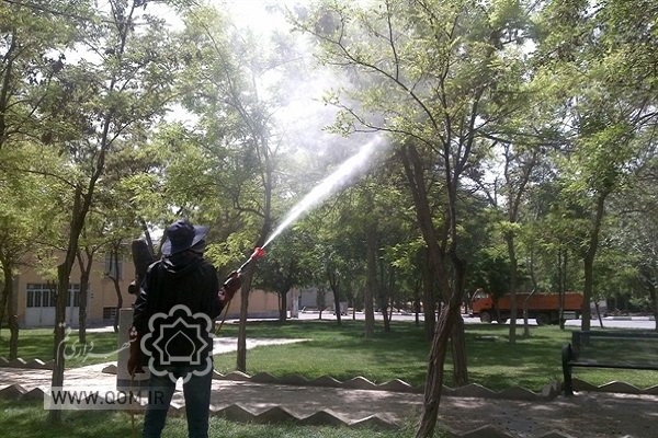اجرای طرح مبارزه با آفات فضای سبز در منطقه ۸ شهر قم