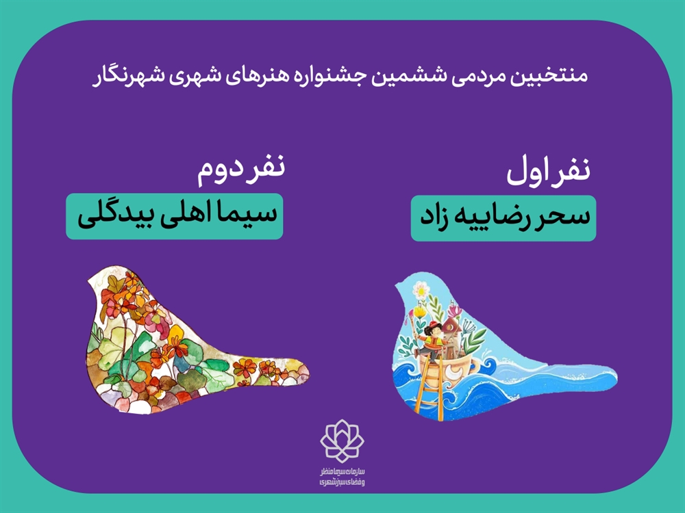 بر این اساس از میان حدود 8000 هزار نظر مردمی خانم سحر رضاییه زاد بهعنوان منتخب اول و خانم سیما اهلی بیدگلی بهعنوان منتخب دوم مشخص شدند که از این دو هنرمند بهعنوان منتخب مردمی ششمین رویداد هنرهای شهری شهرنگار تقدیر به عمل خواهد آمد.