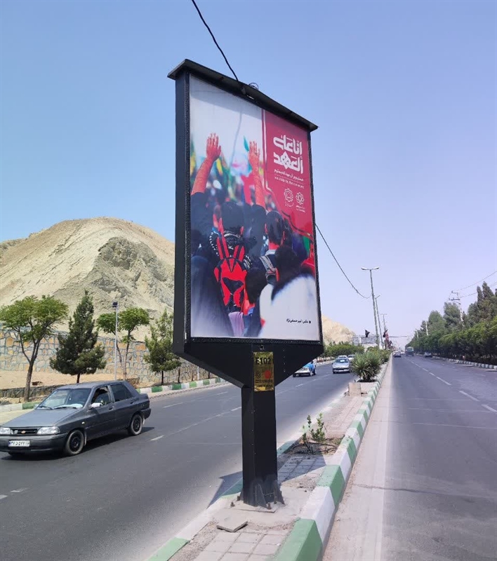 طراحی و چاپ بنرهای اربعینی و نصب تصاویر شهدای اقتدار بر روی المانهای پلاک پرتابل در مسیر پیادهروی جاماندگان حسینی در بلوار معنوی پیامبر اعظم (ص).