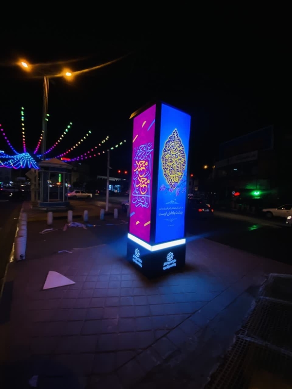 *نصب بیش از ٨٠٠ مترمربع بنر، سازه های قابشهر، سازه های لایتباکس و باکس های چهارطرفه نوری با مضامین معنوی متناسب با ماه ربیعالاول.