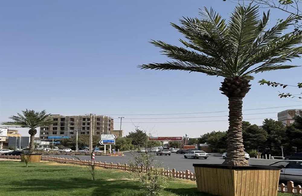 زیباسازی ورودی شهر قم با المانهای درخت نخل در میدان آزادگان