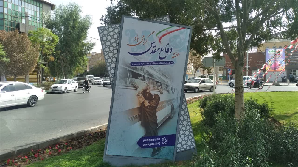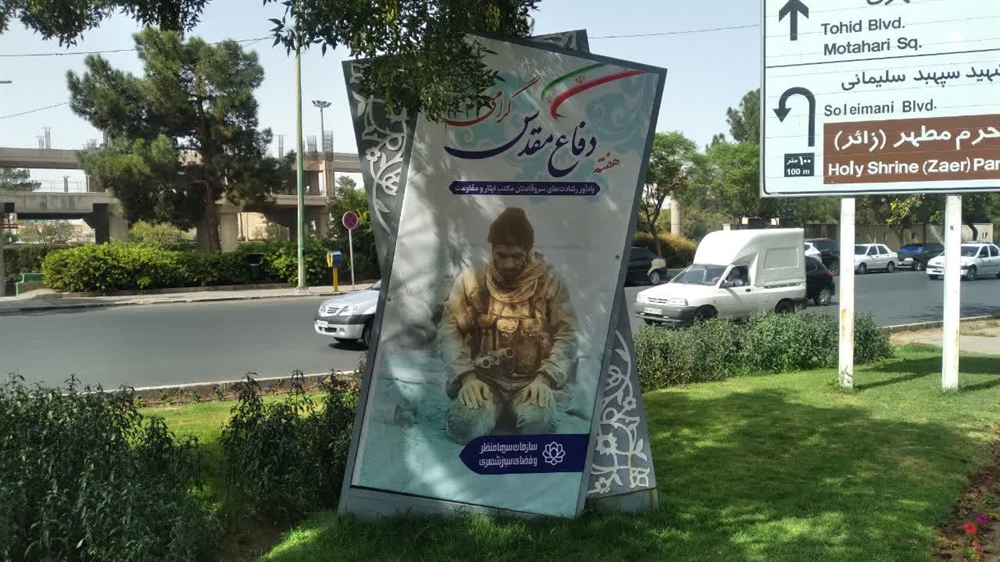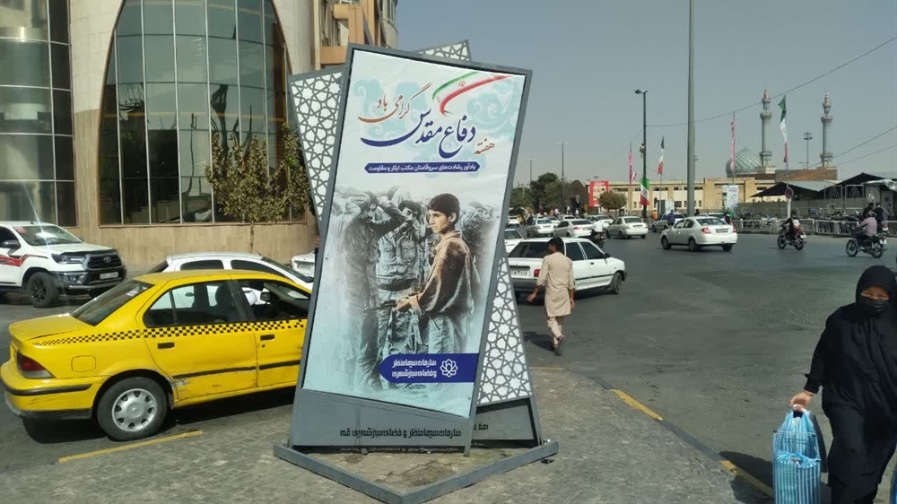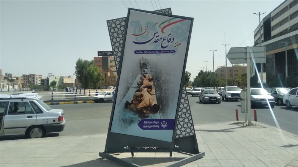نصب ۱۰۰ المان بزرگ شهری مزین به تصاویر شهدا در قم به مناسبت هفته دفاع مقدس